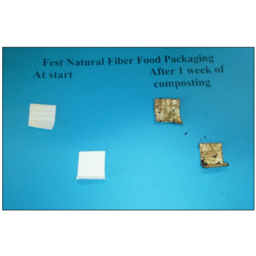 Our natural molded fiber '"FEST BIO" is a disintegration product tested under the method of ISO20200 Plastics - Determination of the degree of disintegration of plastic materials under simulated composting conditions in a laboratory-scale test at ambient temperature (20-30 Degree Celsius)