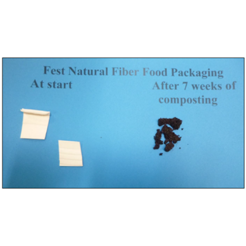 We guarantee that our natural fiber packaging "FEST BIO" is compostable more than 90% in 8 weeks at a suitable condition.